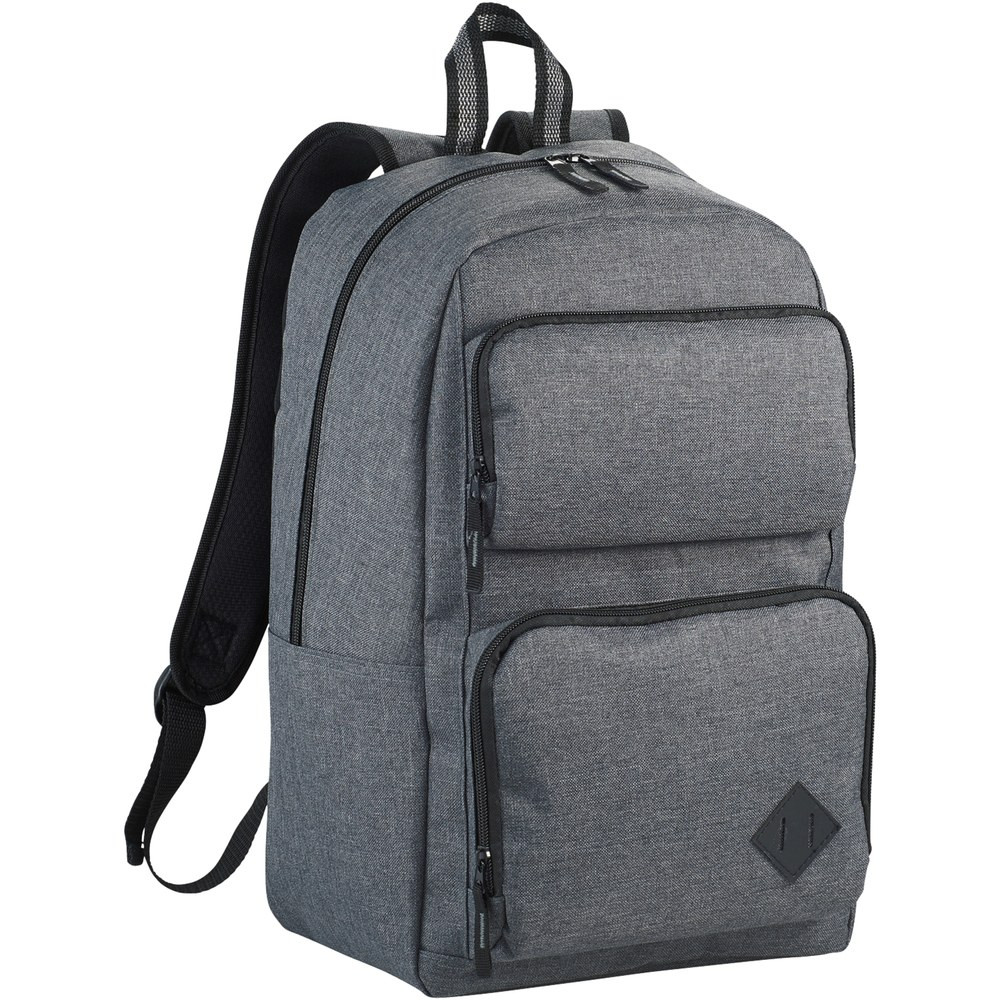 Zipped main compartment with padded laptop sleeve holds up most 15.6" laptops and has a dedicated tablet pocket with room for all your other business essentials. The two front pockets offer flexible decorating locations and are large enough for power banks, cables, and other essentials. The side pocket offers additional storage. Adjustable padded backpack straps and top grab handle. There may be minor variations in the colour of the actual product due to the nature of the fabric dyes, weaves, and printing.
